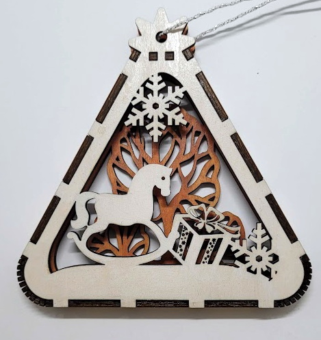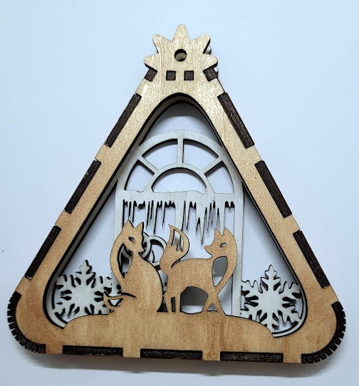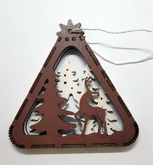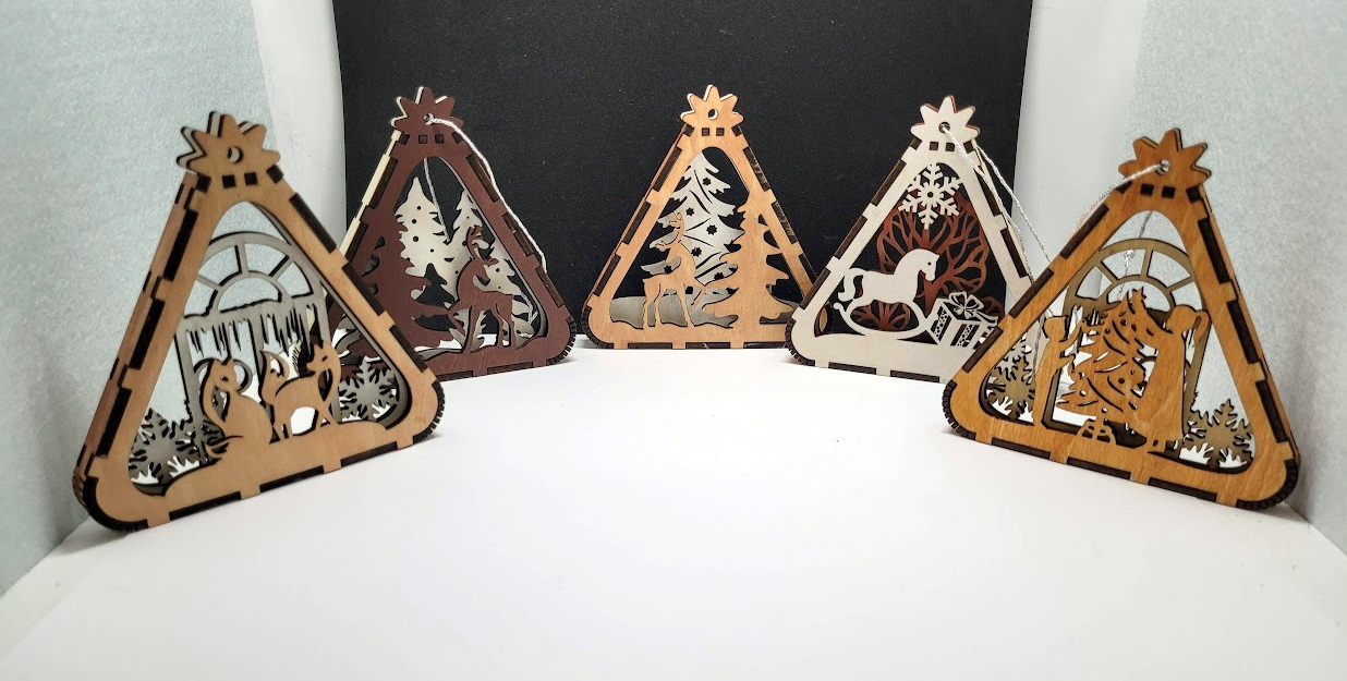 Ces petits triangles ont 2 couches,  je les fabrique en bois de tilleul de 3mm, je les peints en peinture gouache et les colles.